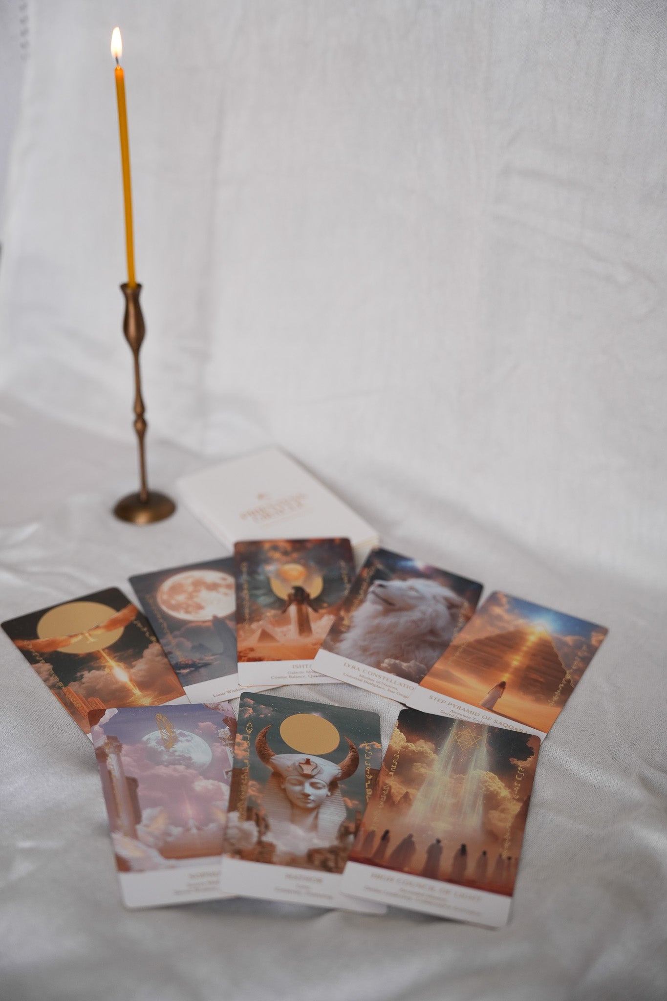 Each card, symbol, and word was channelled & crafted with intention, attuned to the light codes of Kemet and encoded with spiritual energy meant to bring you back to your true self and guide your ascension path in unity consciousness.